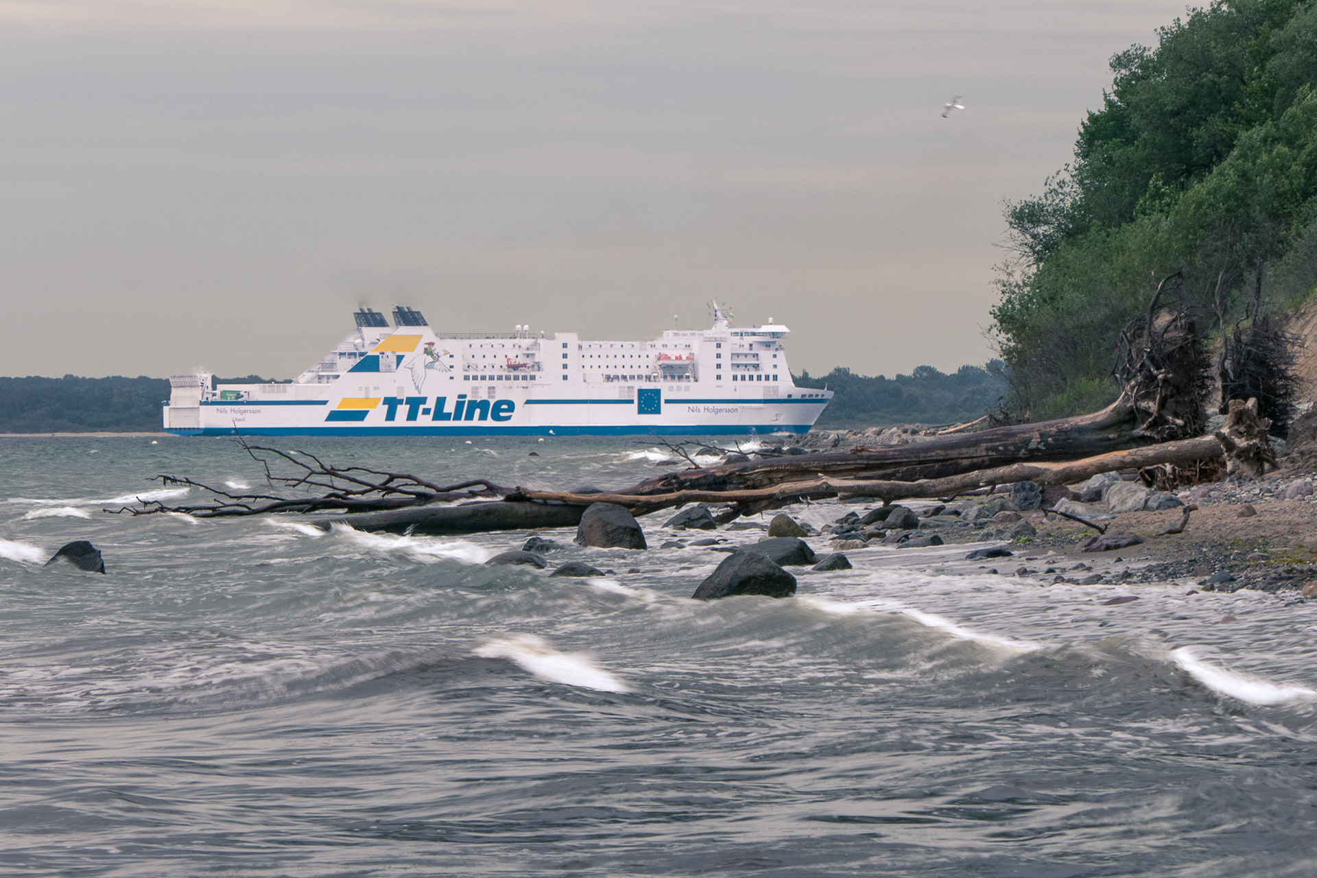 Schon früh erscheinen am Horizont die weißen Schwedenfähren von TT-Line und ziehen eindrucksvoll an der Steilküste entlang. Mit Glück zeigen sich Seehunde auf den Steinen, während Möwen über den Kliffkanten kreisen und das wechselnde Licht die Ostsee immer wieder neu inszeniert.