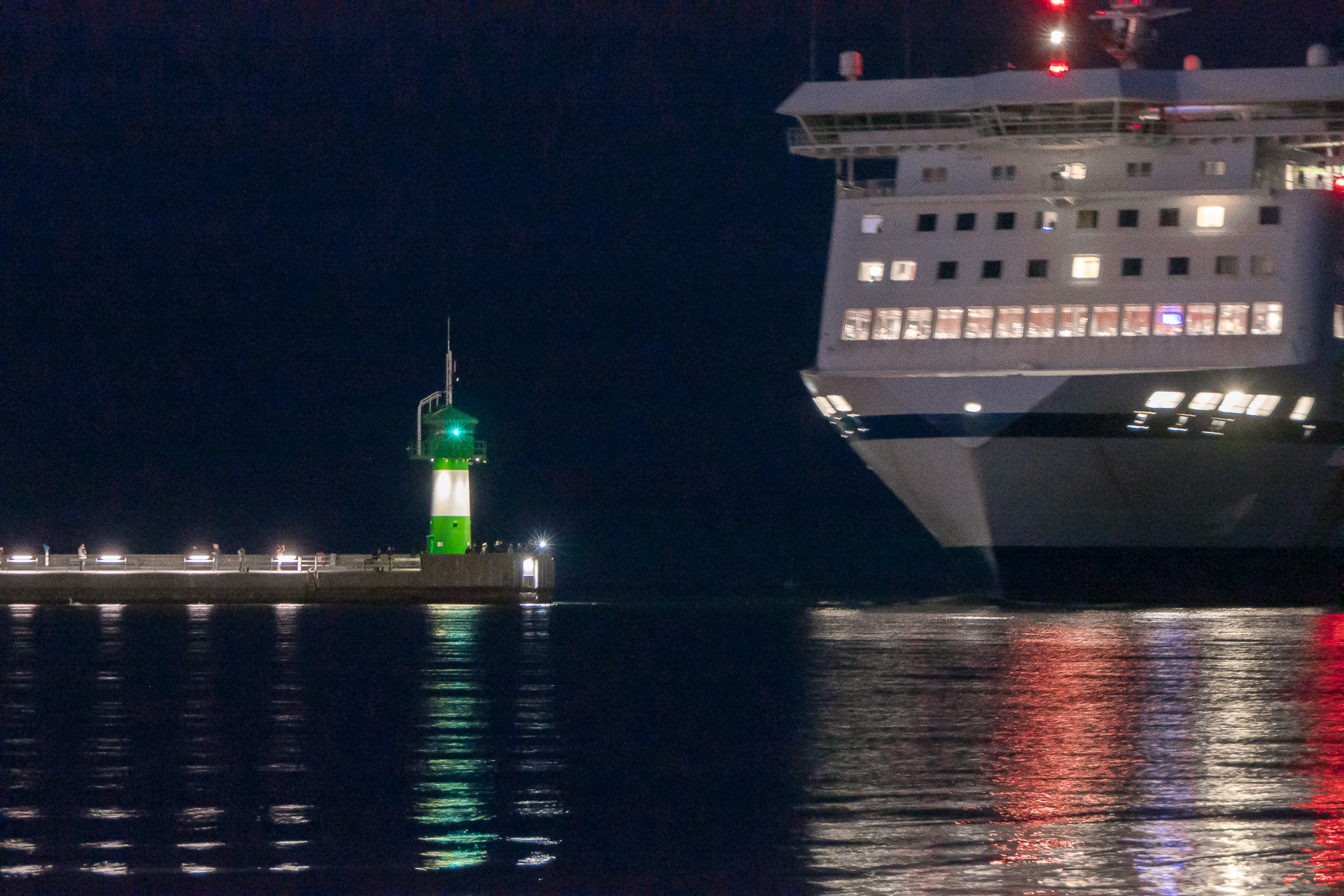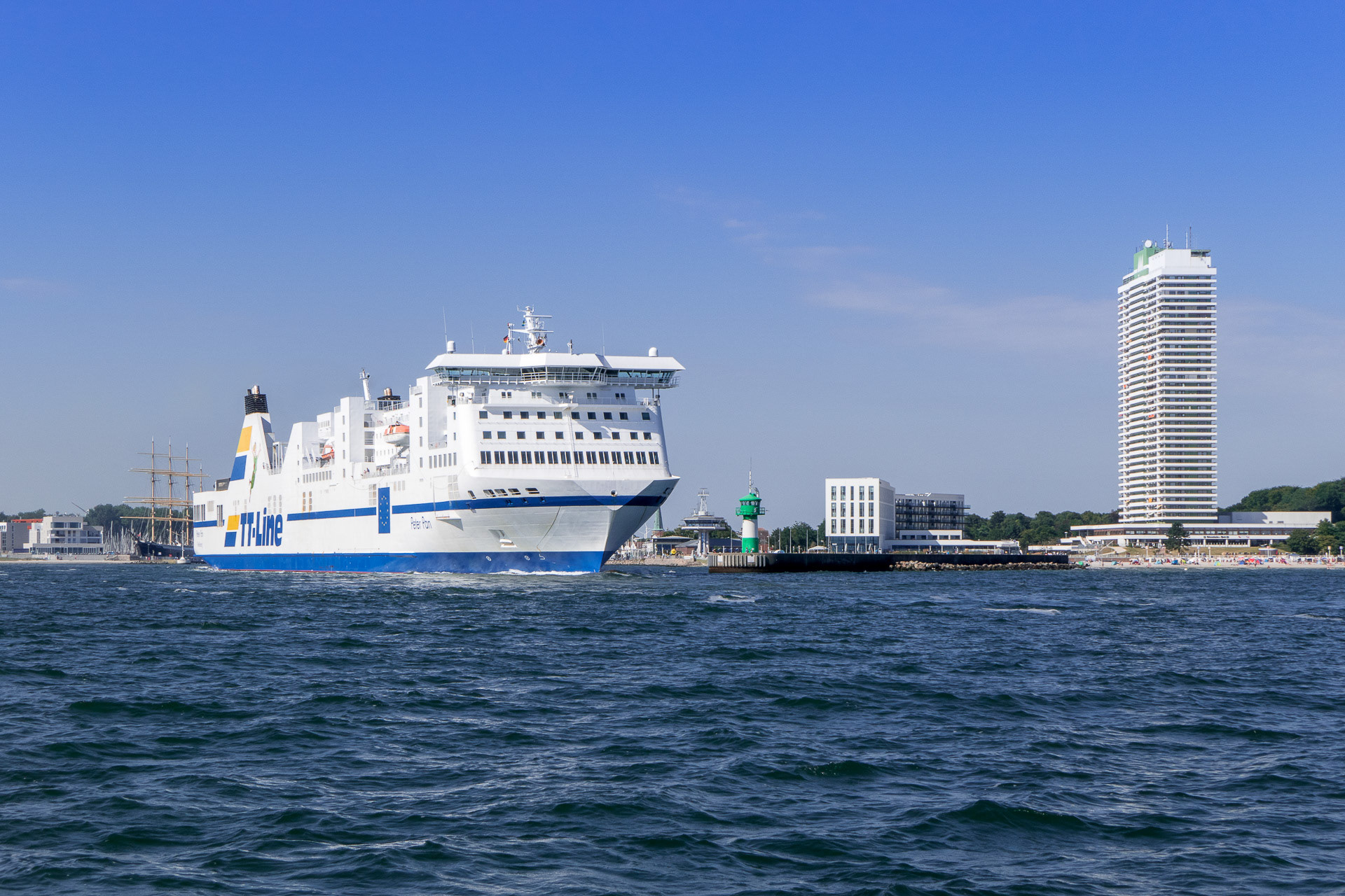 Gerne sitze ich auf der Molenmauer und beobachte mit vielen Urlaubern die weißen Schwedenfähren der TT-Line. Zum Greifen nah passieren sie die Nordermole. Passagiere stehen an Deck und winken. Die Menschen auf der Nordermole winken zurück. Manchmal hört man auch Rufe wie „Gute Fahrt“ oder „Schönen Urlaub“. Viele verabschieden sich von Freunden oder Verwandten, die nach Schweden in den Urlaub fahren.